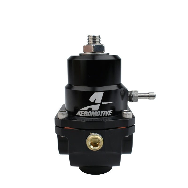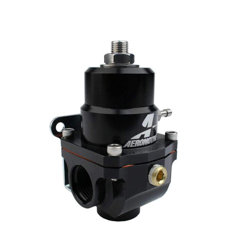 Replace original X1 Series regulator internals with the conversion kit of your choice (Part #?s 13013, 13014, and 13015) and you have a regulator with vastly different characteristics.?While versatility is one of the X1?s greatest assets, it is far from the only new design feature. Utilizing larger (3) -8AN ORB inlet/outlet/return ports to accommodate increased flow, at the same time Aeromotive reduced overall size and the weight by 33% (compared to Aeromotive 13109 regulator). The new X1 design eliminates the compromise common to other convertible regulator designs, with the optimization of all internal components including the diaphragm/poppet, spring and bypass seat, the X1 delivers all of the performance and features you expect from an application specific bypass regulator, regardless of what you decide to do with your induction system tomorrow.? Above and beyond the expected performance, you still have the amenities like a 1/8? NPT gauge port and 1:1 ratio boost reference port for forced induction applications. Base fuel pressure adjustable from 3-20 PSI. Vacuum/Boost reference capability. 1:1 rising rate for blow-through carburetors. Gasoline, ethanol, and alcohol compatible. (2) ORB-08 inlet/outlet ports on the sides. (1) ORB-08 return port on the bottom. (1) 1/8? NPT Gauge Port with plug. 1/16? NPT Boost Port with 5/32? hose barb. Compatible with both X1 EFI conversion kits. 0.313? bypass with matching spring and poppet. Handles up to 150 GPH with AN-08 return line. Suitable for any Aeromotive pump up to A1000. Mounting bracket included.